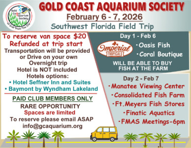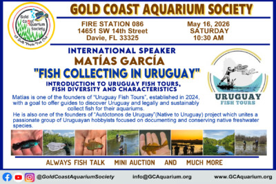 Whether you’re interested in freshwater fish, shrimp, planted tanks or ponds, Gold Coast Aquarium Society of South Florida is home for you.